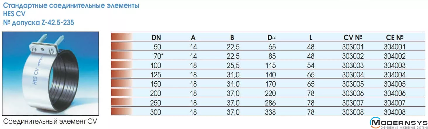 Соединительный элемент PAM-GLOBAL от CV. Зажимная гильза из стабилизированной хромистой стали, материал № 1.4510/11 согласно DIN EN 17 440/41. Замки и винты оцинкованы. Уплотнительные манжеты из EPDM, под заказ, а также в качестве специального исполнения до DN 300 с уплотнительной манжетой NBR для нефте- и бензинсодержащих стоков.