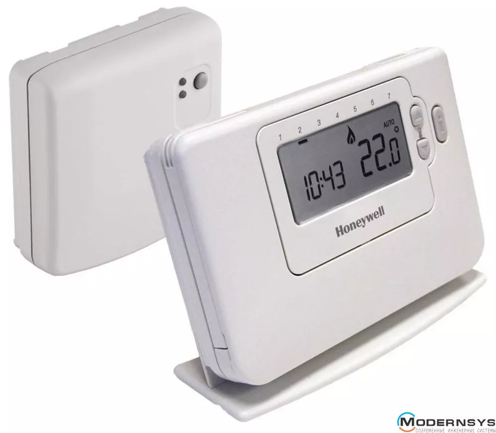 Управляемые элементы отопительного оборудования подключаются к релейному модулю при помощи проводов. Сам модуль устанавливается в месте где обеспечивается устойчивый прием сигналов от комнатного модуля. В модели Honeywell CMT727 D1016 используется технология «интеллектуальной адаптации», благодаря которой устройство подстраивается под тепловые характеристики помещения и с высокой точностью поддерживает заданные пользователем тепловые режимы.