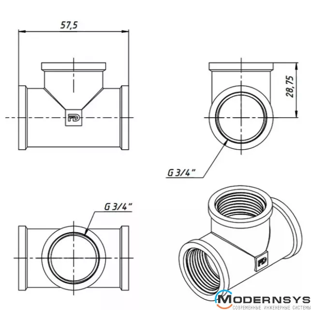 Описание: Хром FADO (Фадо) тройник 3/4" ВВВ