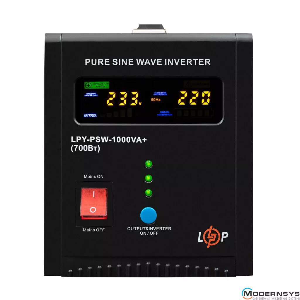 ИБП с правильной синусоидой LPY-PSW-2000VA+ (1400Вт) 10A/20A имеет мощность 2000/1400 Вт.