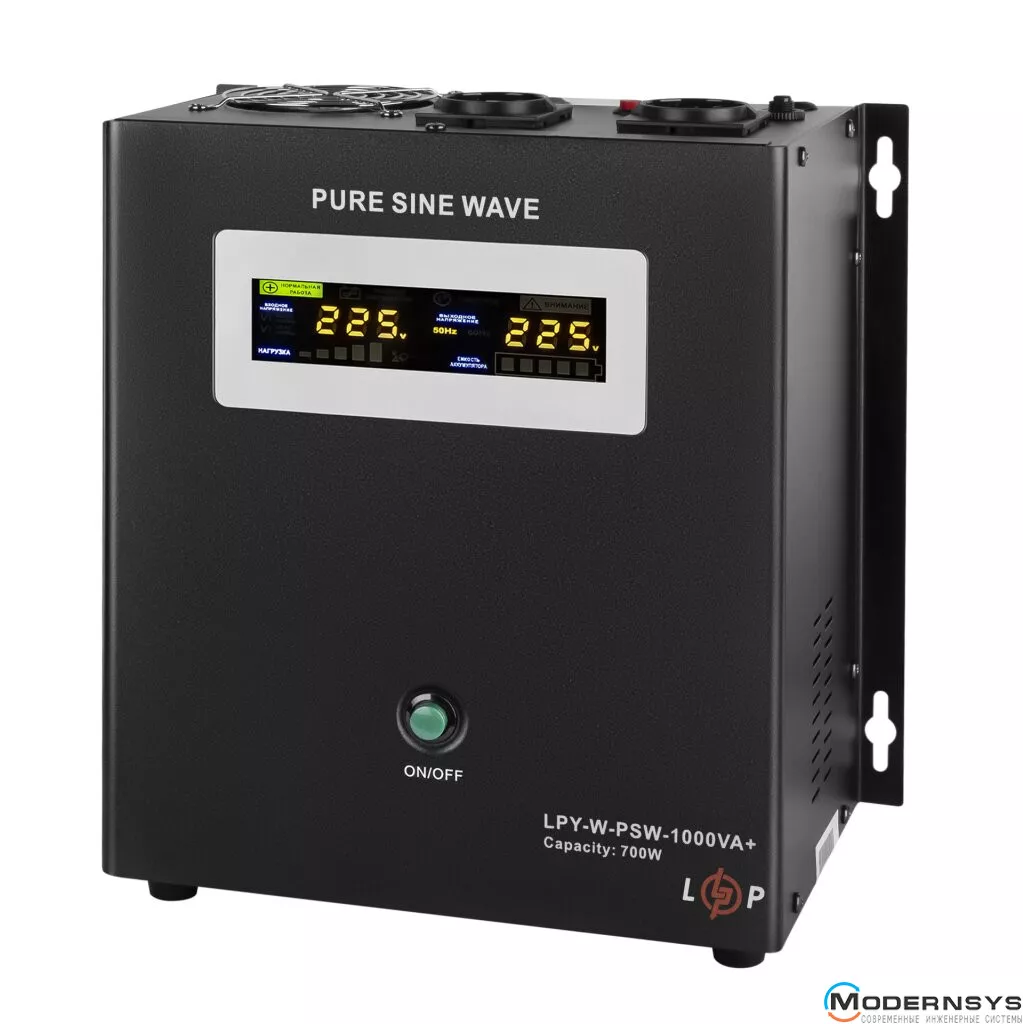 ИБП с правильной синусоидой LPY-W-PSW-1000VA+ (700Вт) 10A/20A имеет мощность 1000/700 Вт.