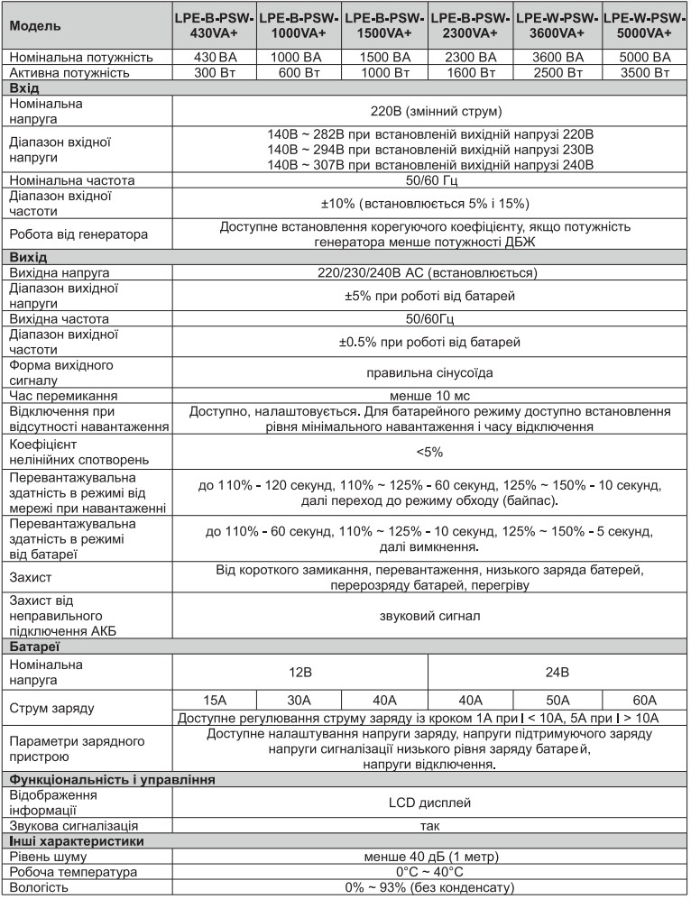 Технические характеристики: ИБП LogicPower (Лоджик Повер) с правильной синусоидой 24V LPE-W-PSW-3600VA+ (2500Вт) 1-50A