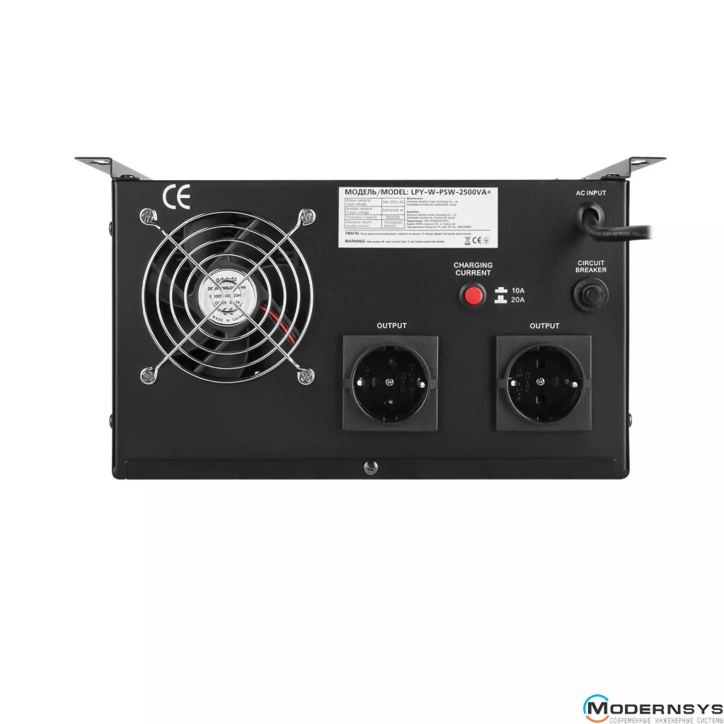 ИБП с правильной синусоидой LPY-W-PSW-2500VA+ (1800Вт) 10A/20A имеет мощность 2500/1800 Вт.