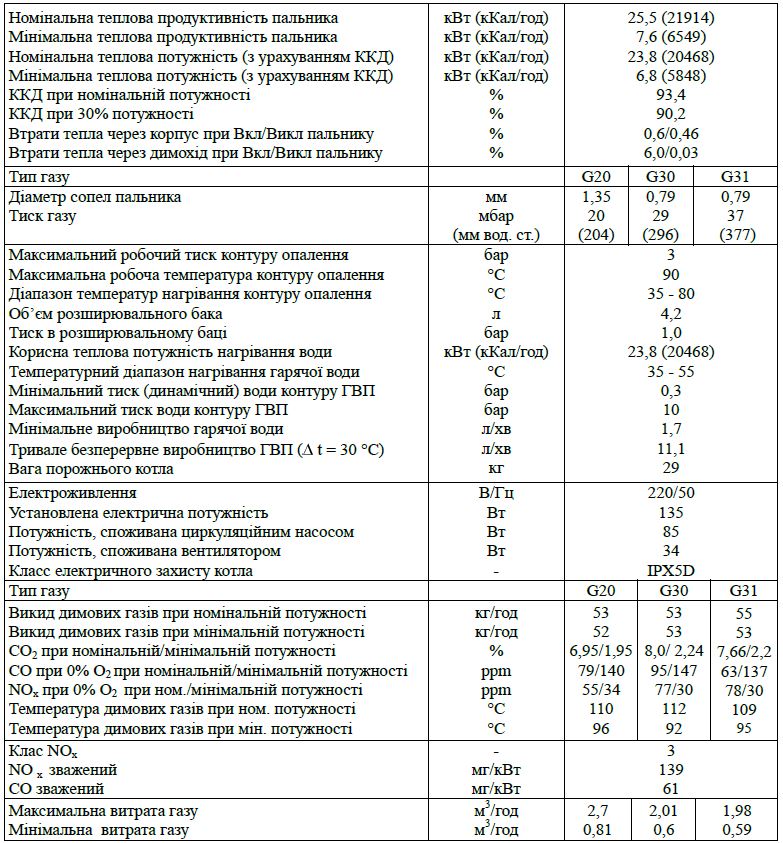 Технические характеристики для котлов Immergas Eolo Star