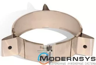 - Монтажные хомуты из нержавейки, устанавливаются через каждые 3 метра на дымоходах, которые проходят в шахтах или кирпичных (бетонных) каналах и обеспечивают вертикальную подвижность элементов и выполняют его центровку;