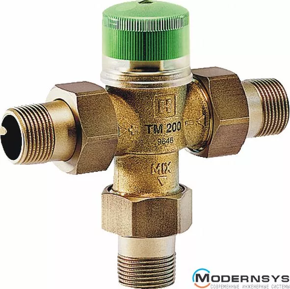 Клапаны служат для поддержания заранее установленной температуры воды в централизованных или локальных узлах водоснабжения, в отопительных контурах систем «теплый пол», а также для ограничения температуры теплоносителя в обратном трубопроводе котлов. Смесительные клапаны доступны в двух вариантах, отличающимися размером подсоединения. Для TM300-3/4H наружная резьба G _ с накидными гайками и обжимными фитингами 22 мм, модель TM300-3/4I имеет такую же наружную резьбу G _ с накидными гайками, но комплектуется обжимными фитингами 28 мм.
