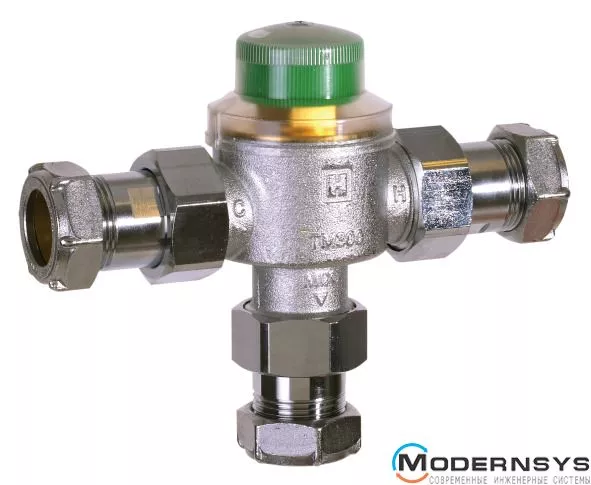 Клапаны служат для поддержания заранее установленной температуры воды в централизованных или локальных узлах водоснабжения, в отопительных контурах систем «теплый пол», а также для ограничения температуры теплоносителя в обратном трубопроводе котлов. Смесительные клапаны доступны в двух вариантах, отличающимися размером подсоединения. Для TM300-3/4H наружная резьба G _ с накидными гайками и обжимными фитингами 22 мм, модель TM300-3/4I имеет такую же наружную резьбу G _ с накидными гайками, но комплектуется обжимными фитингами 28 мм.