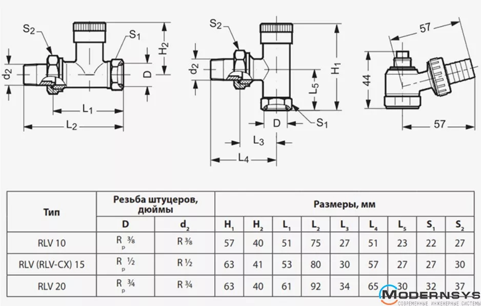 Габаритные и присоединительные размеры Данфосс RLV-CX соответствуют стандарту DIN 3842-1.