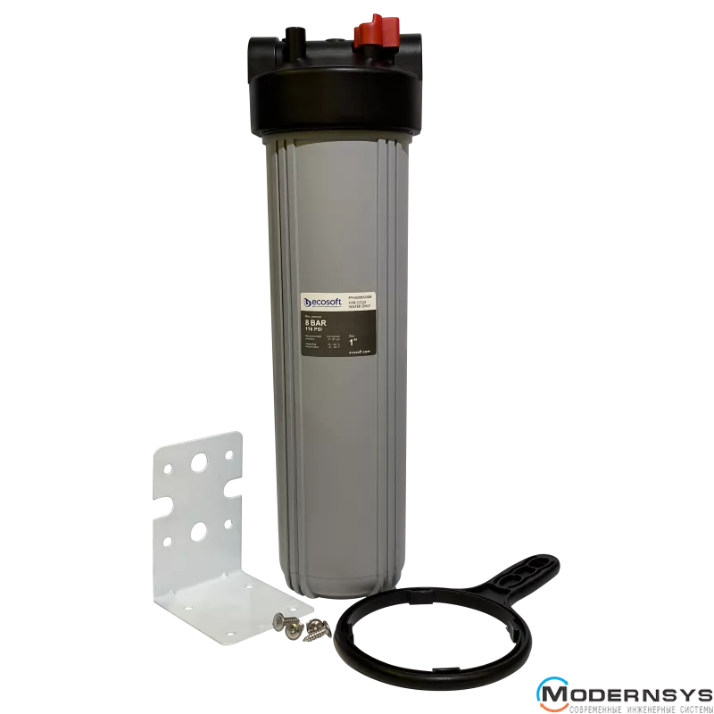 Для водопроводов с невысокой производительностью оптимальным выбором являются модели проточных фильтров FPV4510ECO и FPV4520ECO (отличаются максимальным расходом воды) компании Ecosoft. В качестве фильтрующего элемента используется полипропиленовый картридж 4,5x10″ (для FPV4510ECO) или 4,5x20″(для FPV4520ECO). Загрязненные картриджи подлежат замене. Оборудование поставляется в корпусе с кронштейном и крепежом, а также ключом для открытия фильтрующего отсека.