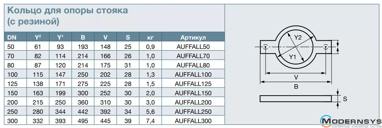 Технические характеристики: Кольцо опоры стойки SML с резиной DN150 RSP (РСП) AUFFALL150