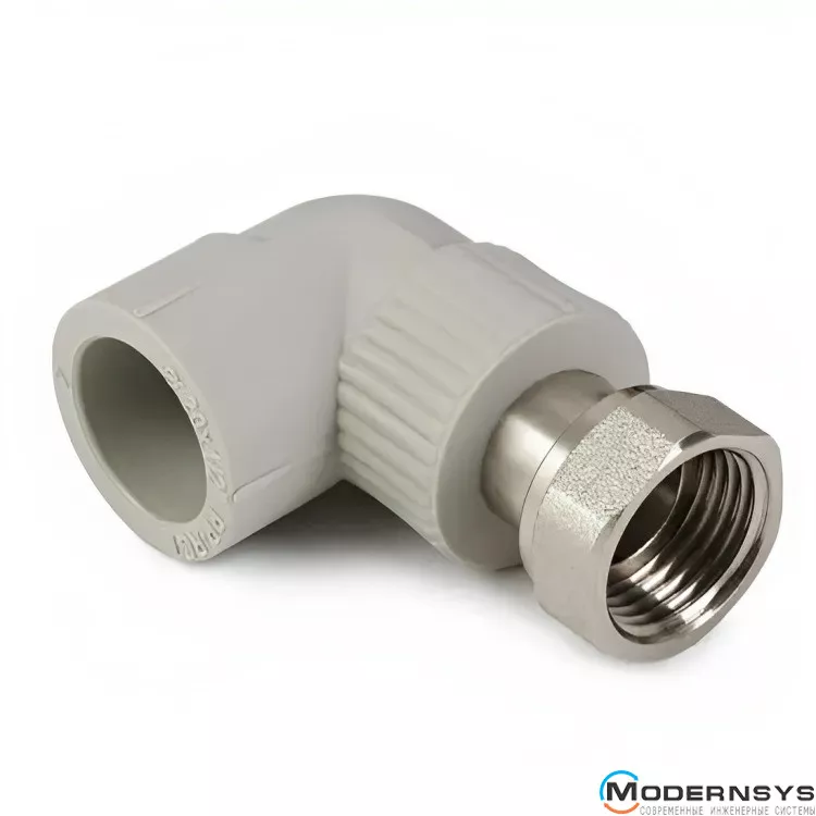 Технические характеристики: Колено 90* переход. пласт. с накид. гайкой ASG (АСГ) 25х1/2 ППР (Серый)