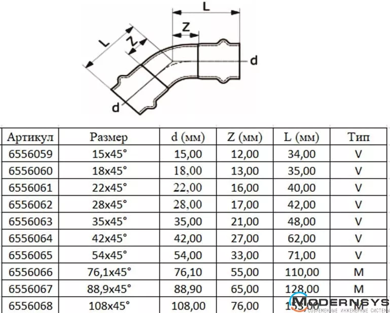 Предназначен для изменения направления трубопровода под направлением 45°.