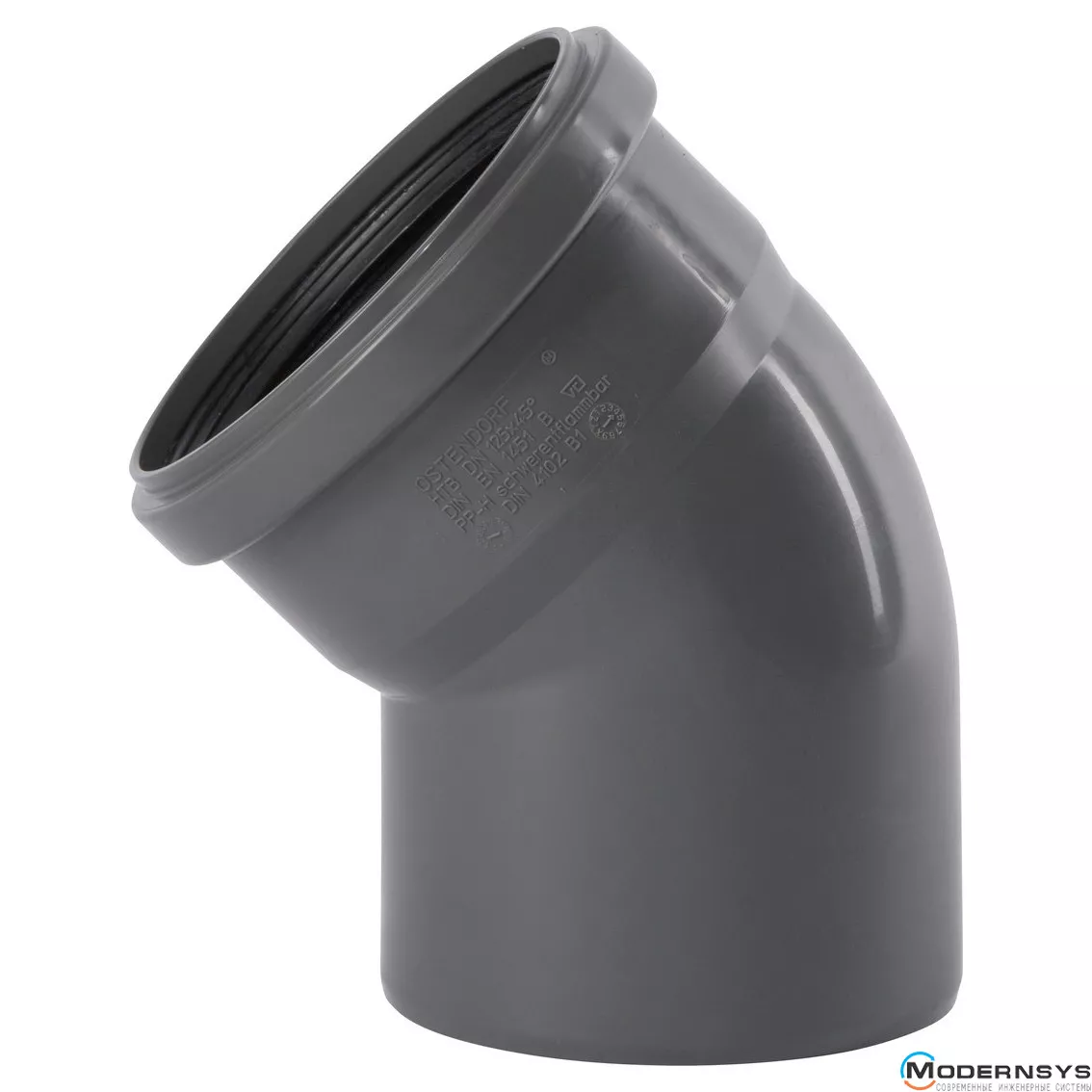 Колено канализационное Ostendorf Skolan db 125х45, Вид канализации: Внутренняя, Тип канализации: Бесшумная, Градус (град.): 45, Цвет: Светло-серый, Диаметр (мм): 125, Материал: Полипропилен PPR, фото Колено канализационное Ostendorf Skolan db 125х45