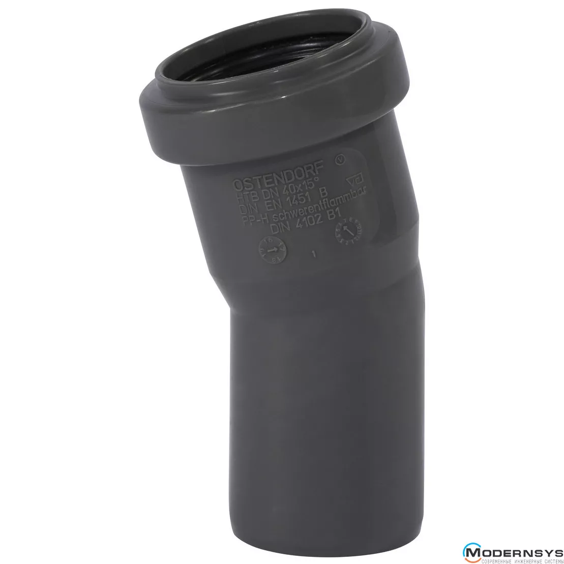 Колено канализационное Ostendorf HT-Safe 110*15˚, Вид канализации: Внутренняя, Тип канализации: Простая, Градус (град.): 15, Цвет: Темно-серый, Диаметр (мм): 100, Материал: Полипропилен PPR, фото Колено канализационное Ostendorf HT-Safe 110*15˚