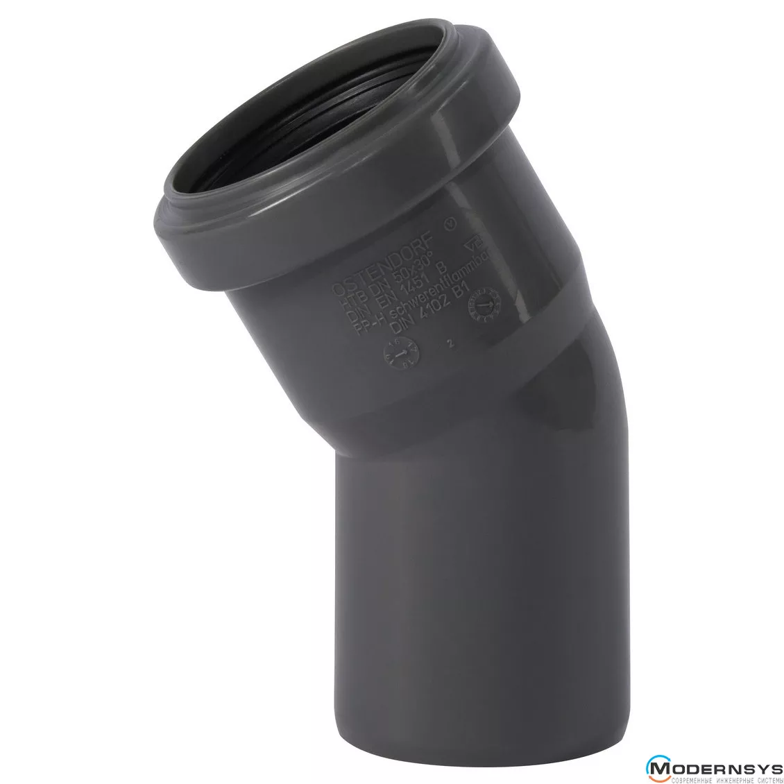Колено канализационное Ostendorf HT-Safe 90*30˚, Вид канализации: Внутренняя, Тип канализации: Простая, Градус (град.): 30, Цвет: Темно-серый, Диаметр (мм): 90, Материал: Полипропилен PPR, фото Колено канализационное Ostendorf HT-Safe 90*30˚