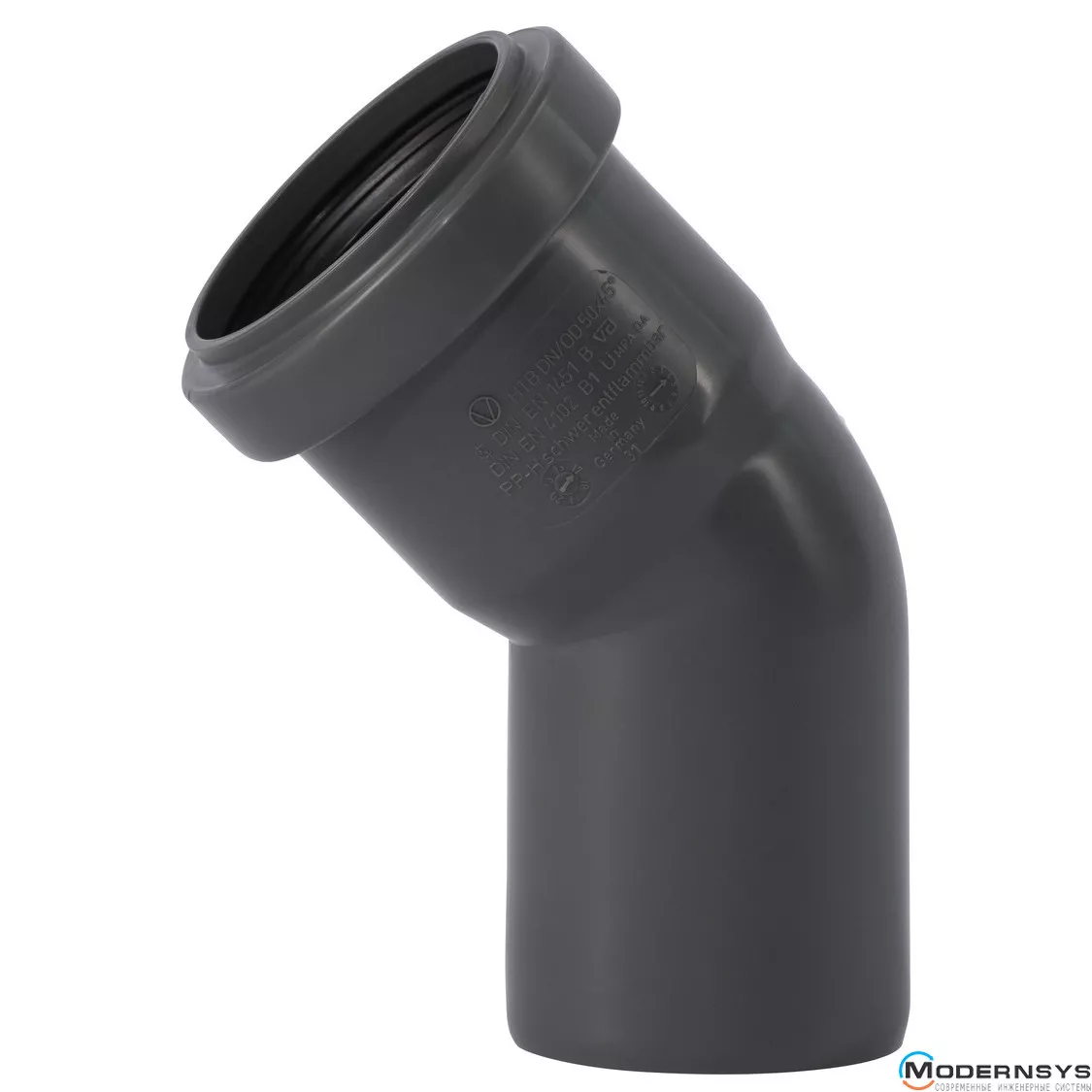 Колено канализационное Ostendorf Skolan db 150х45, Вид канализации: Внутренняя, Тип канализации: Бесшумная, Градус (град.): 45, Цвет: Светло-серый, Диаметр (мм): 150, Материал: Полипропилен PPR, фото Колено канализационное Ostendorf Skolan db 150х45