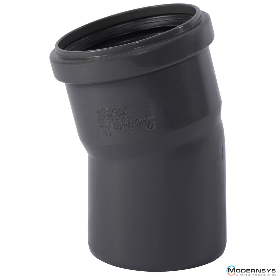 Колено канализационное Ostendorf HT-Safe 75*15˚, Вид канализации: Внутренняя, Тип канализации: Простая, Градус (град.): 15, Цвет: Темно-серый, Диаметр (мм): 75, Материал: Полипропилен PPR, фото Колено канализационное Ostendorf HT-Safe 75*15˚