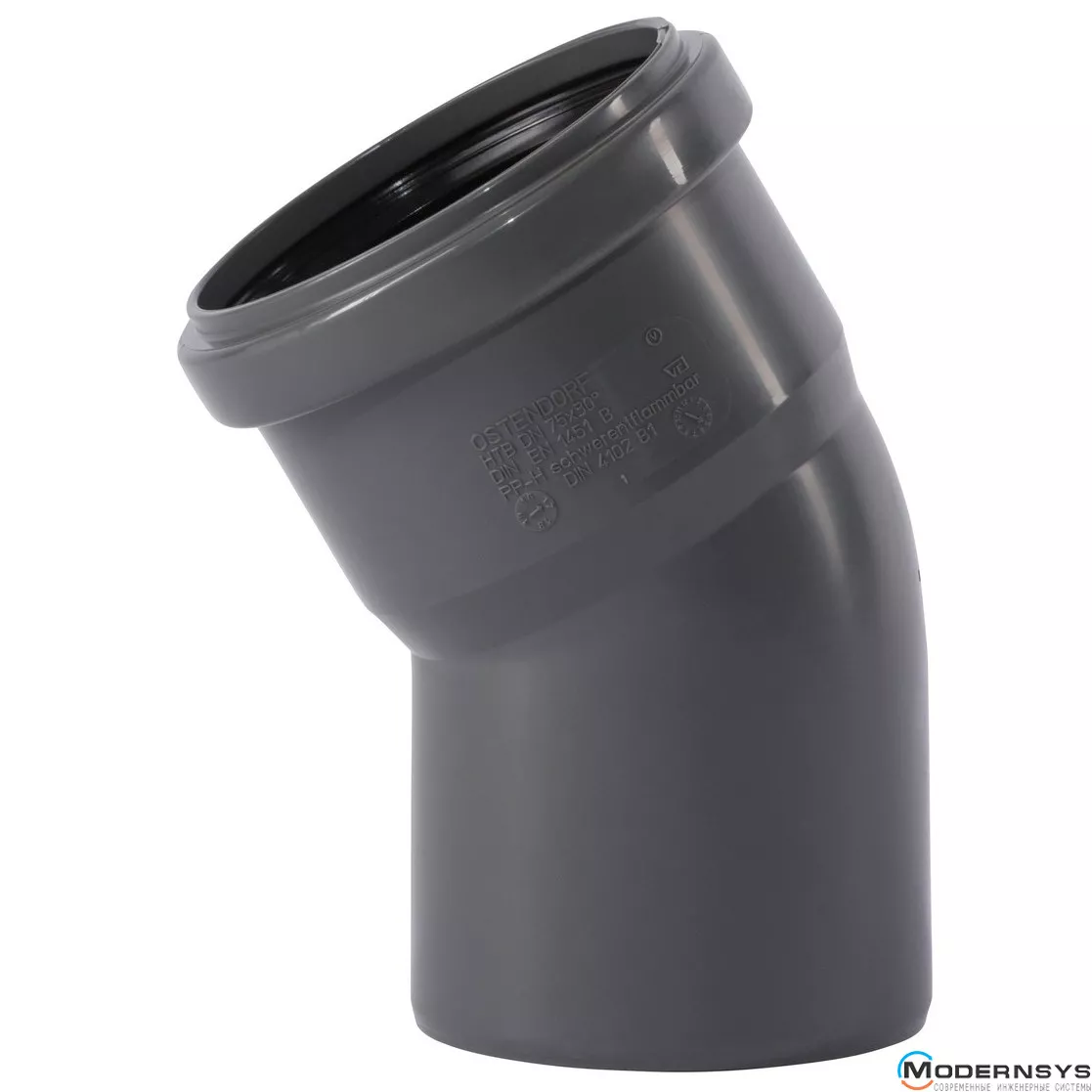 Колено канализационное Ostendorf Skolan db 150х45, Вид канализации: Внутренняя, Тип канализации: Бесшумная, Градус (град.): 45, Цвет: Светло-серый, Диаметр (мм): 150, Материал: Полипропилен PPR, фото Колено канализационное Ostendorf Skolan db 150х45
