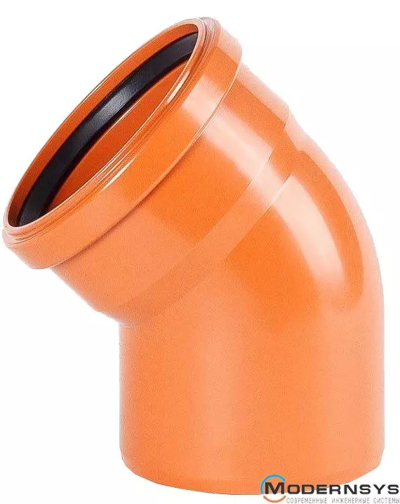 Колено канализационное Magnaplast KG 110/45, Вариант: Простое, Вид канализации: Наружная, Тип канализации: Простая, Градус (град.): 45, Диаметр (мм): 100, Материал: Поливинилхлорид (ПВХ), фото Колено канализационное Magnaplast KG 110/45