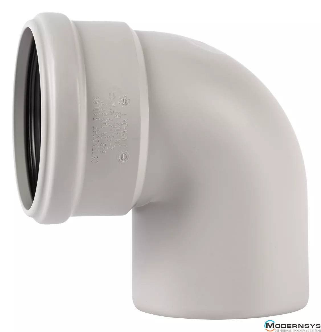 Колено канализационное Ostendorf Skolan db 90х87, Вид канализации: Внутренняя, Тип канализации: Бесшумная, Градус (град.): 90, Цвет: Светло-серый, Диаметр (мм): 90, Материал: Полипропилен PPR, фото Колено канализационное Ostendorf Skolan db 90х87