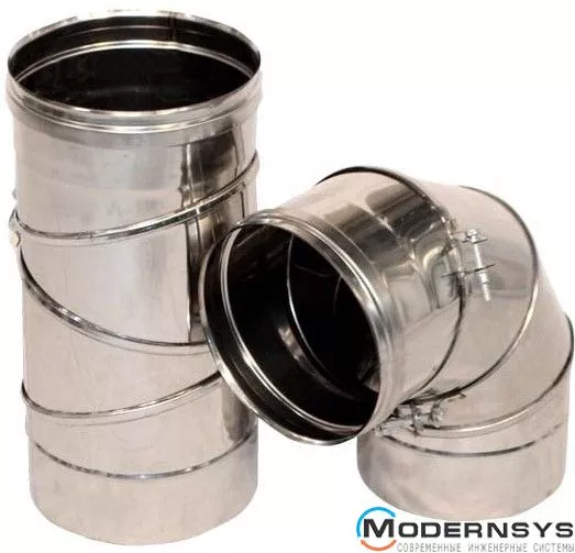 Если необходимо изменить направление дымового канала одностенного дымохода на угол, который отличается от 45 или 90 градусов, применяют нержавеющие колена с регулируемым углом поворота (0°-90°). Конструктивно колена из нержавеющей стали 0°-90° выполнены из четырех сегментов, которые могут фиксироваться в различных положениях, устанавливая необходимый угол поворота, и определяя направление голого дымохода.Колена с изменяемым углом поворота изготавливаются с жаростойкой нержавеющей стали и, несмотря на высокую прочность, не должны удерживать на себе вес участков дымохода. Для соединения с другими элементами одностенных дымоходов используется принцип «труба в трубу», без использования дополнительных креплений. Такие варианты соединения дымоходов применяют только для котлов, использующих в качестве топлива газ.