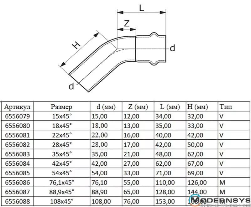 Предназначен для изменения направления трубопровода под направлением 45°.