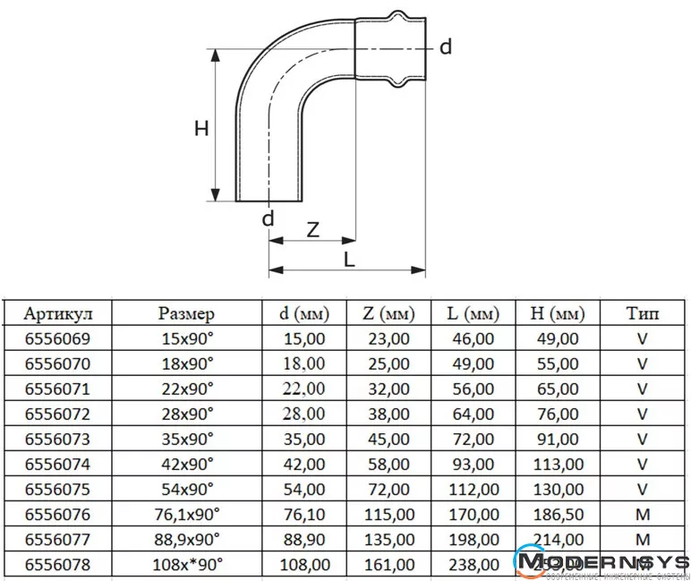 Предназначен для изменения направления трубопровода под направлением 90°.