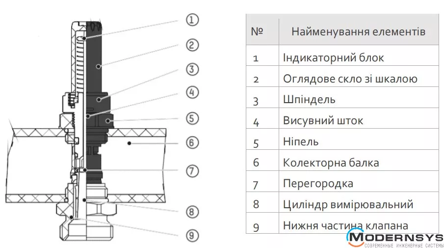 Коллекторный блок объединяет в себе подающий и обратный коллекторы из латуни, ручные