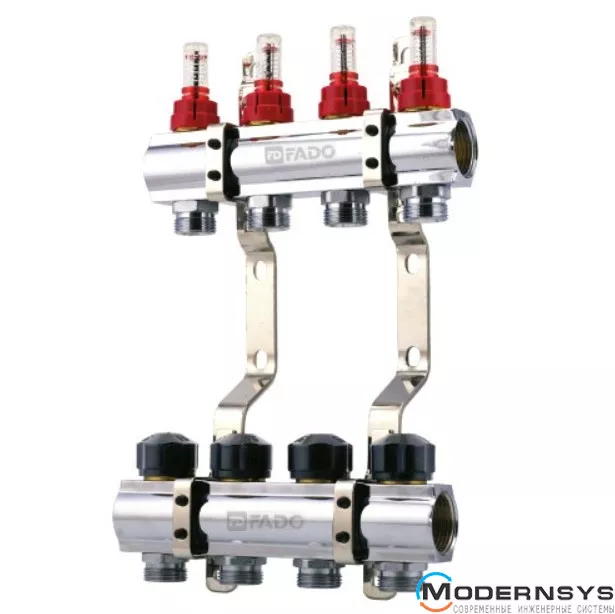 Описание: Коллектор FADO (Фадо) с расходомерами 1"х3/4" 4 выхода
