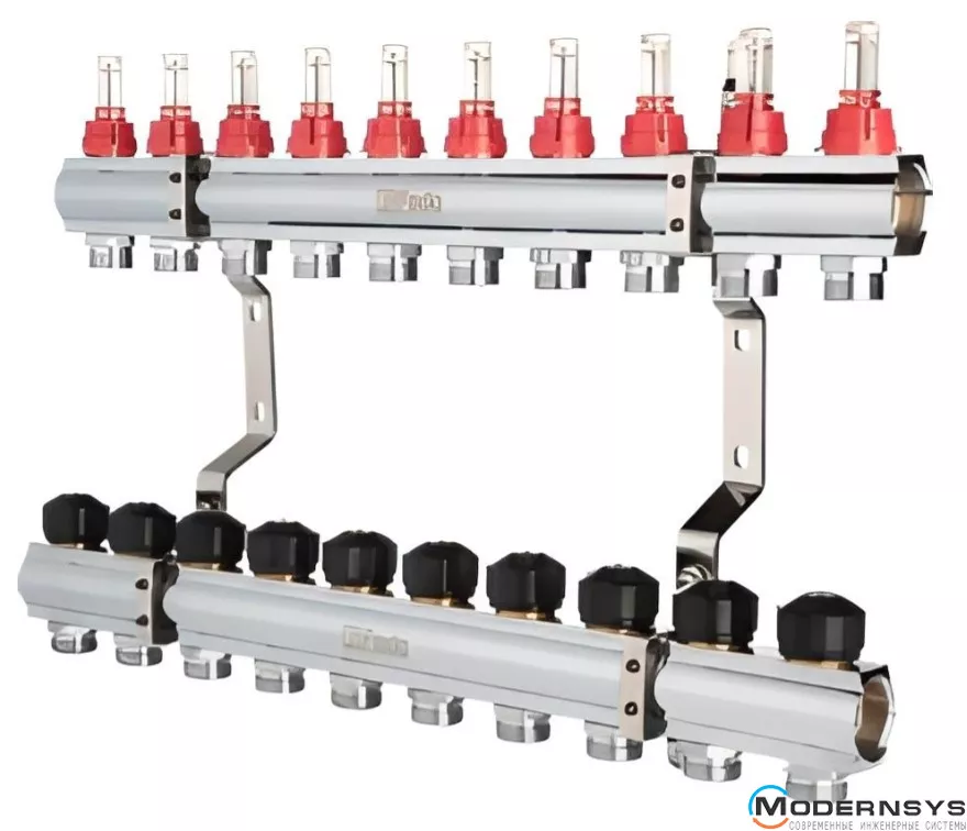 Коллекторные блоки с расходомерами предназначены для распределения потока рабочей