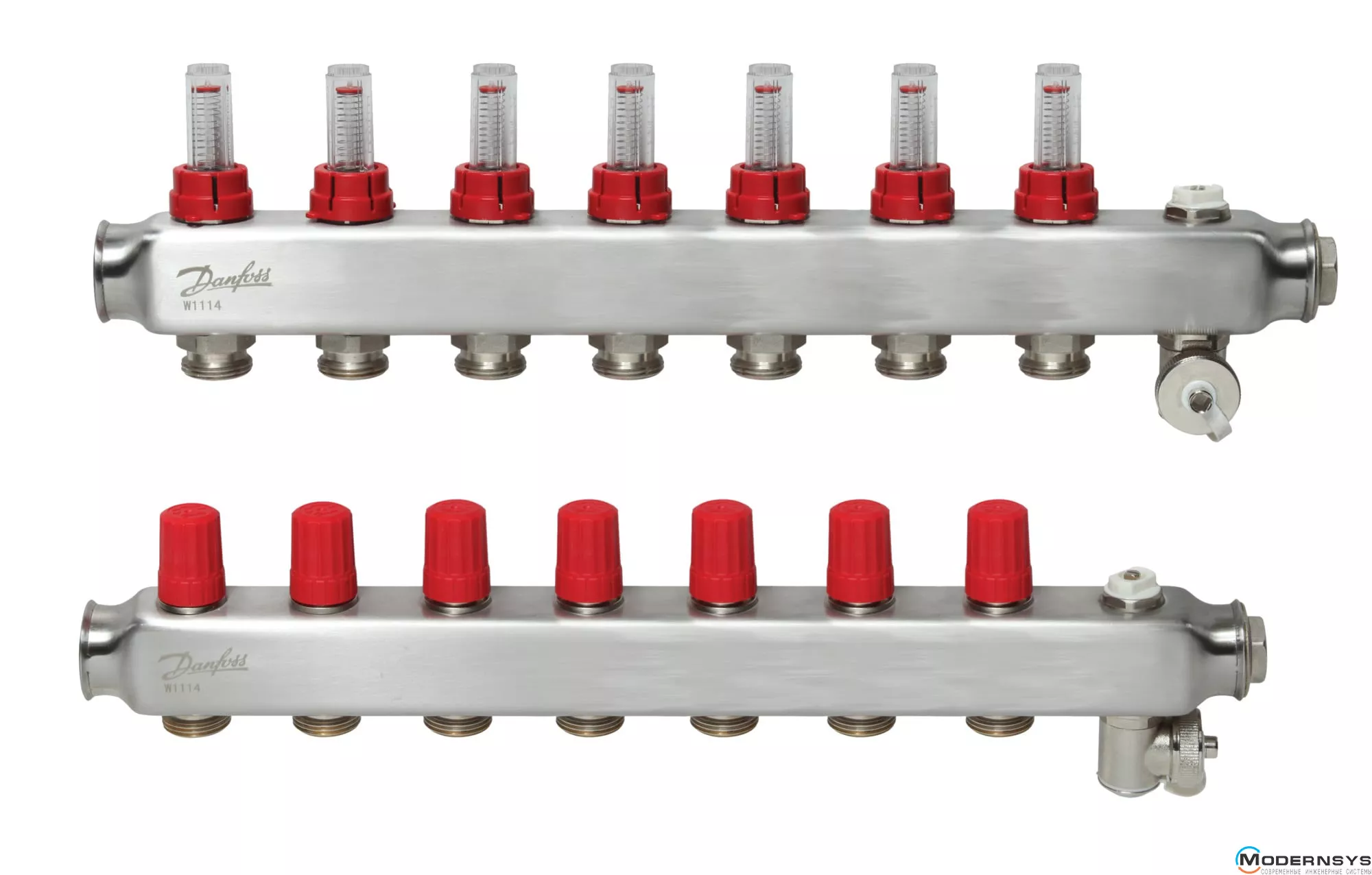 Описание: Коллектор из нержавеющей стали Danfoss (Данфос) 7+7 с ротаметрами SSM-7F
