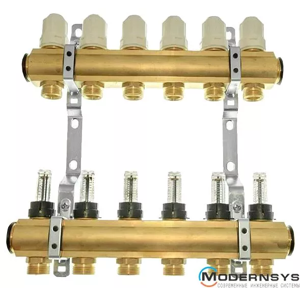 Описание: Коллектор Meibes (Майбес) Rossweiner на 6 контуров с расходомерами (латунный) (1794046pack)
