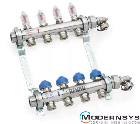 Коллектор Rehau HKV-D с расходомерами 4 контура |