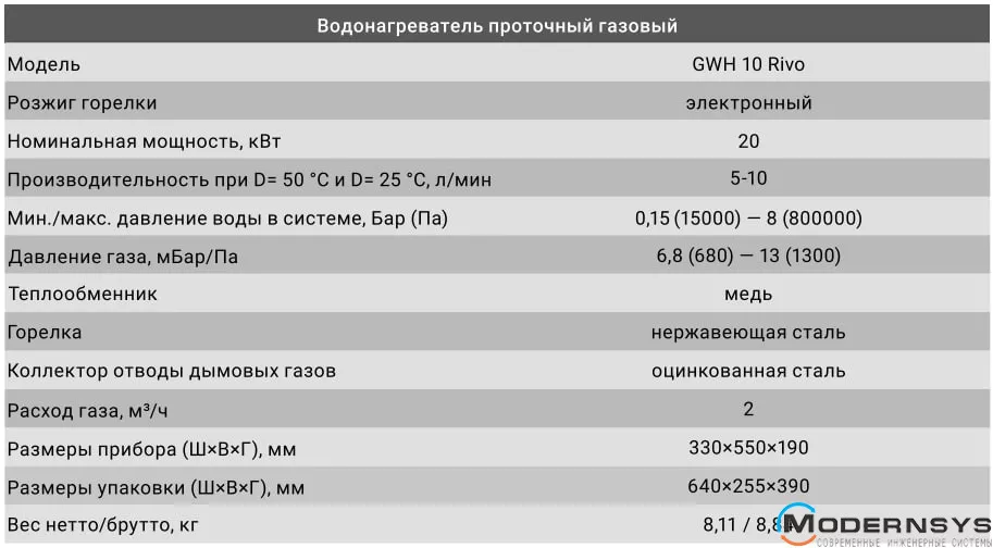 Технические характеристики: Колонка газовая Zanussi (Занусси) GWH 10 Rivo