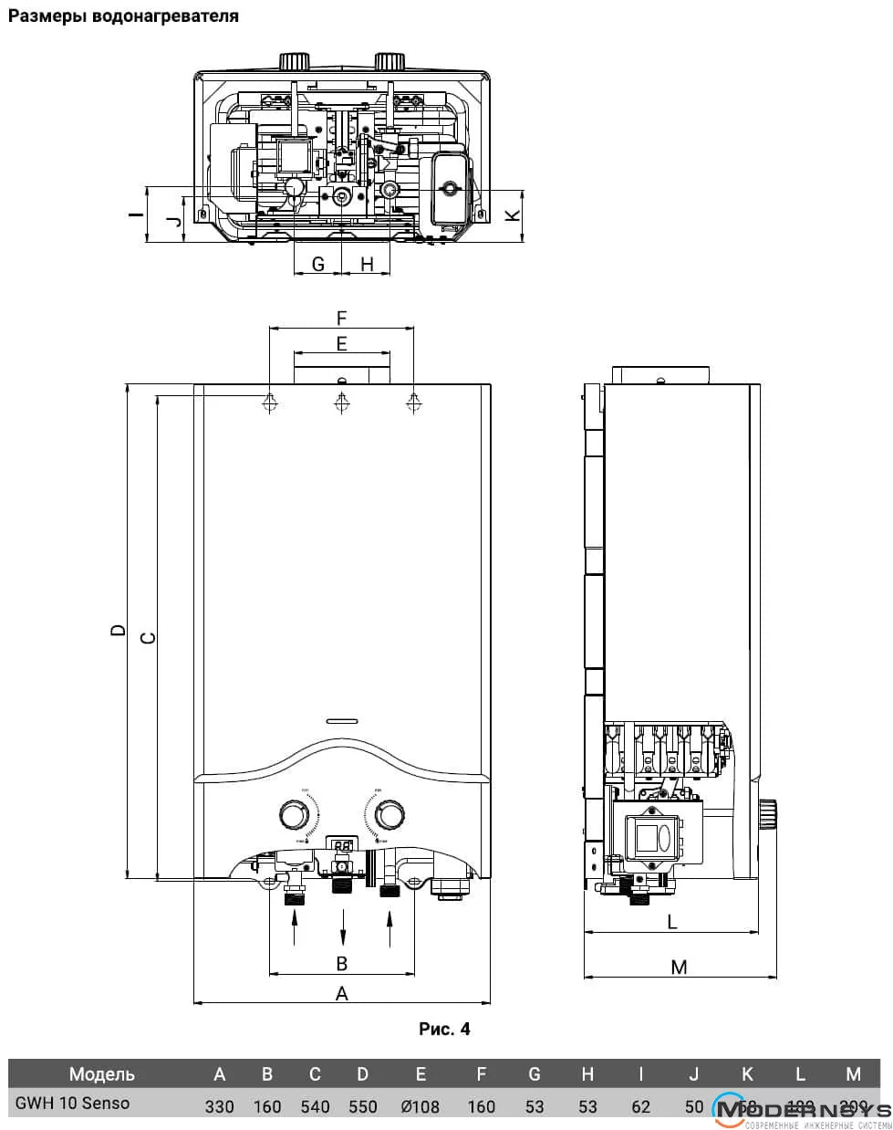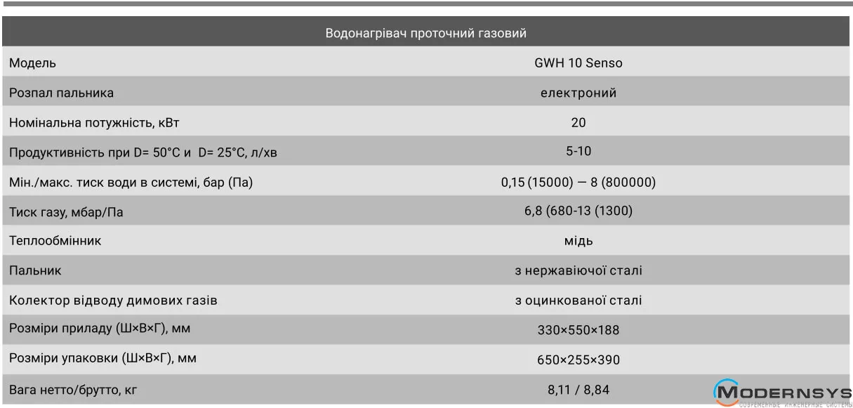 Технические характеристики: Колонка газовая Zanussi (Занусси) GWH 10 Senso