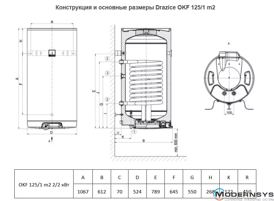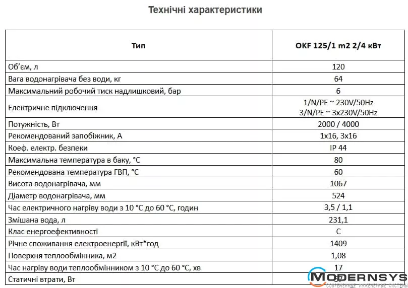 Технические характеристики: Комбинированный бойлер Drazice (Дражица) OKF 125/1m 2/4kw