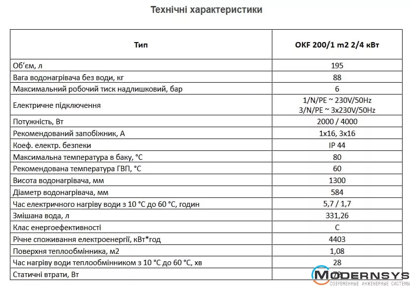 Технические характеристики: Комбинированный бойлер Drazice (Дражица) OKF 200/1m 2/4kw