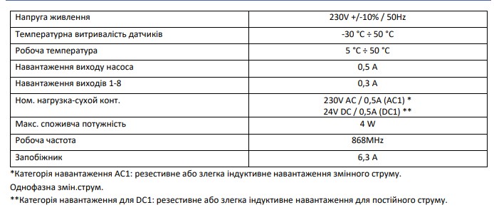 - возможность подключения беспроводных комнатных контроллеров R-8b , R-8z или C-8r или C-mini;
