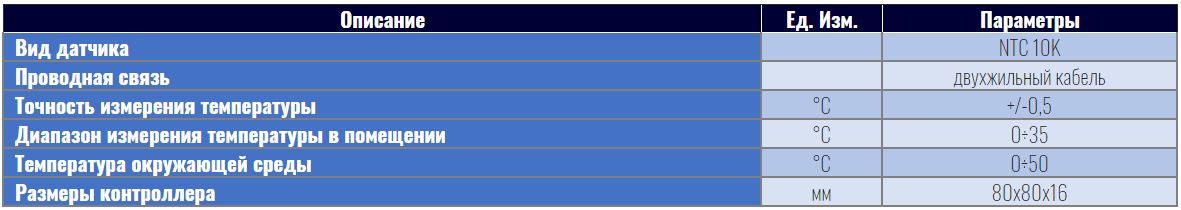 Технические характеристики для комнатного датчика TECH C-7p