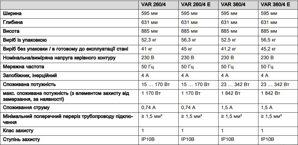 Технические характеристики: Vaillant (Вайлант) recoVAIR VAR260 / 4 (0010016046)