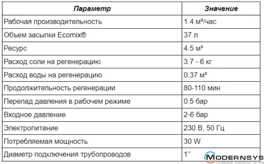 - Расход соли на одну регенерацию — 3,7 или 6 кг (зависит от качества входящей воды).
