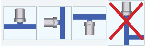 Компенсатор гидроударов может быть установлен вертикально или горизонтально.