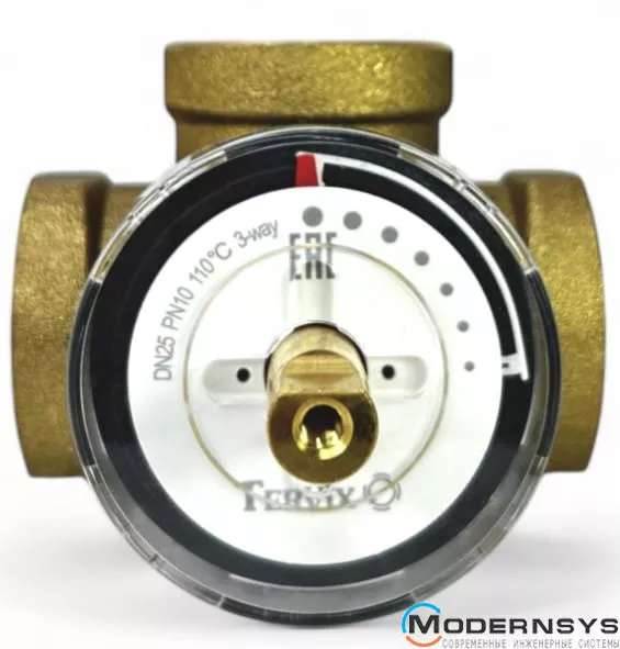 Технические характеристики: Комплект 3-ходовой смесительный клапан RMV DN25 Rp1" Tervix (Тервикс) + Привод электрический 3-точки / 2-точки AMV