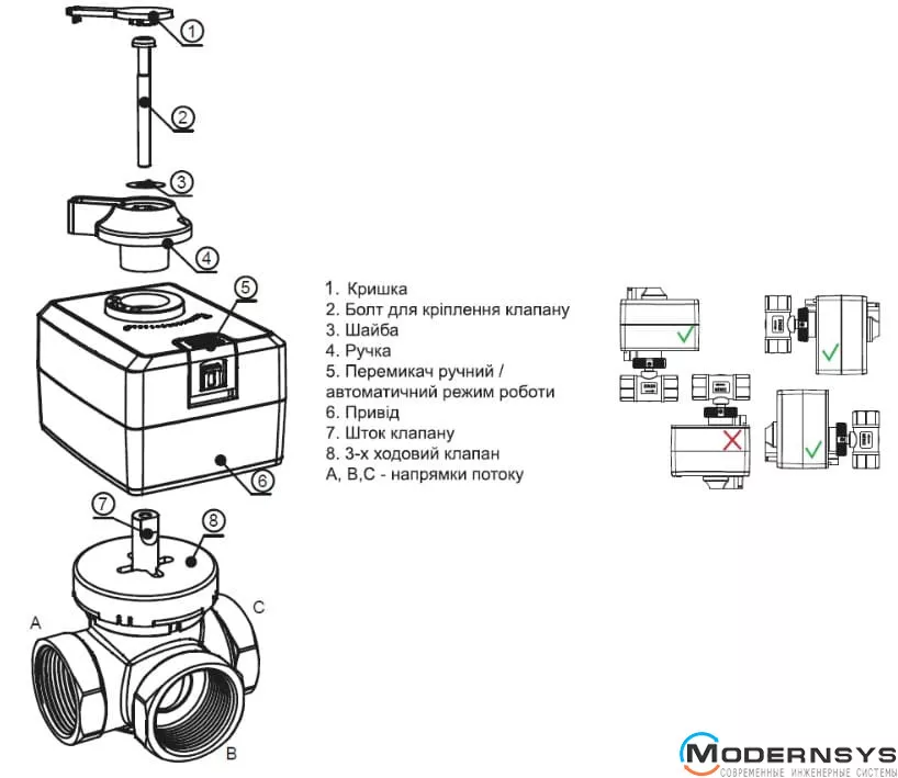 В комплект входит клапан RMV Tervix Pro Line (314132) и привод CAMV Tervix Pro Line (204454).