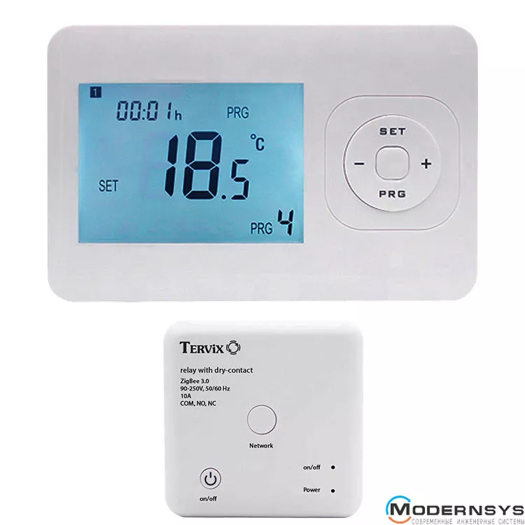 Описание: Комплект беспроводного управления отоплением Tervix (Тервикс) Pro Line ZigBee беспроводной термостат + реле (с