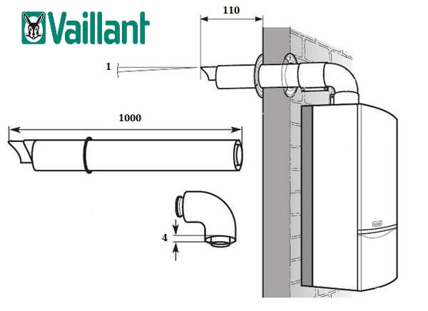 Технические характеристики: Комплект дымохода Vaillant (Вайлант) для горизонтального прохода через стену 60/100 РР (конд.)