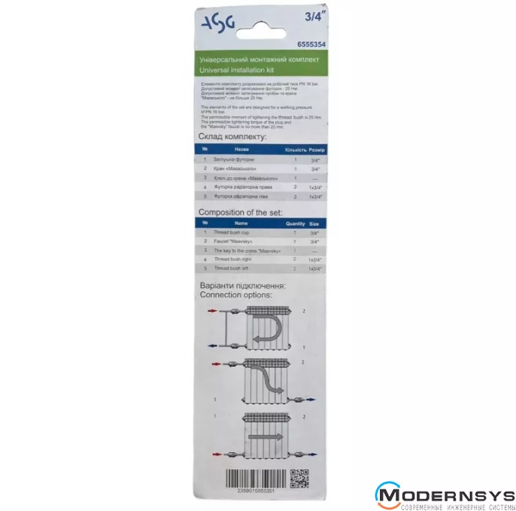 Технические характеристики: Комплект футорок ASG (АСГ) 1/2" для радиатора