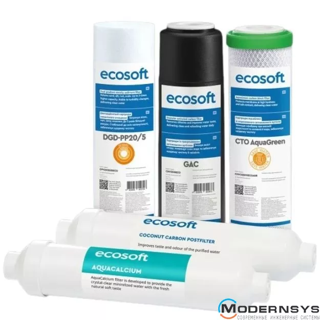 - Комплект картриджей совместим с фильтрами обратного осмоса Ecosoft PURE AquaCalcium - Вкусная вода с кальцием.