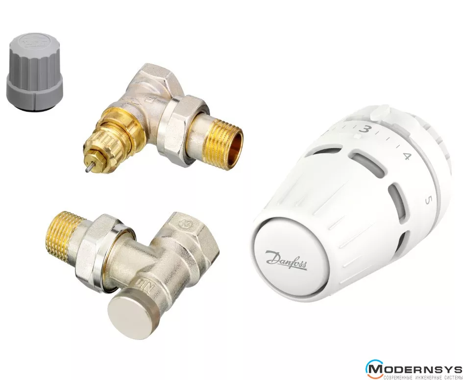 Описание: Комплект кранов термостатический Danfoss (Данфос) RA nut+RA-FN+RLV-S 15 A w. O-ring угловой