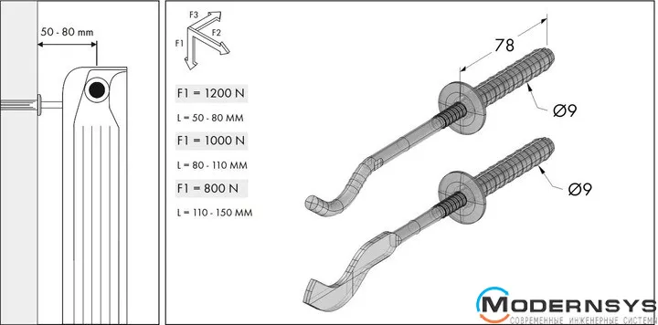 Учитывайте характеристики стены при выборе шурупов, дюбелей и количества кронштейнов для установки радиатора. В компании разработали несколько специализированных решений, как для настенного, так и для напольного монтажа, соответствующих классу 3 VDI 036, т.е. наивысшему уровень безопасности, кроме индивидуально определенных предписаний в особых условиях.
